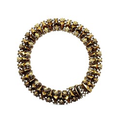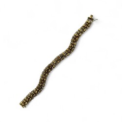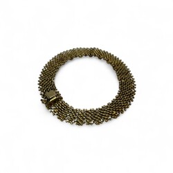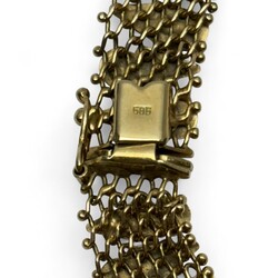 | Omschrijving | Een 20e eeuwse 14 karaats (585/1000) geelgouden dames armband. Lang model, met bloemvormige en driehoekige motieven op de band |