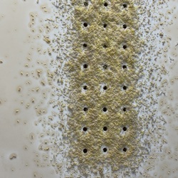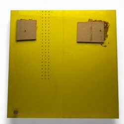 | Omschrijving | Kunstwerk, acryl, board. Compositie met boorgaten, door Harmen Abma (Hijlaard 1937 - Sneek 2007), ca. 1970. Zie voor soortgelijk werk ‘Harmen Abma – Grondtonen’, 2009, p. 54. |