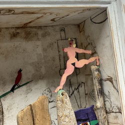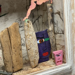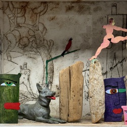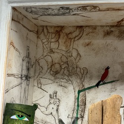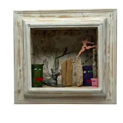 | Omschrijving | Kijkkast, aan de binnenzijde met etswerk en diverse objecten, waaronder figuren en drijfhout. Aan de achterzijde gemonogrammeerd 'H.W.' = Holly Witteveen (Leeuwarden, 1948), gedateerd 2005-2013. |