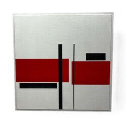| Omschrijving | Jan Loman (1918-2006), abstracte compositie in rood, zwart en wit, acrylverf op board, verso gesigneerd en gedateerd 2002 |