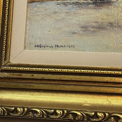 | Omschrijving | Schilderij, olieverf op paneel. 'Aan de IJssel'. Linksonder gesigneerd Johannes Elsinga (Wommels 1893 - Leeuwarden 1969), gedateerd 16 okrober 1949. |