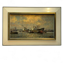 | Omschrijving | Schilderij, olieverf op doek. De haven van Rotterdam. Rechtsonder gesigneerd Joop Molenaar (Rotterdam 1914-1990). |