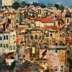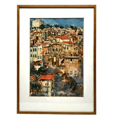 | Omschrijving | Gemengde techniek (waterverf & krijt) op papier. Stadsgezicht, vermoedelijk Italië. Rechtsonder gesigneerd Martin Monnickedam (Amsterdam 1874 - 1943), datering onder passe-partout). |