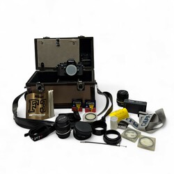 | Omschrijving | Een Nikon F3 analoge fotocamera, met daarbij drie verschillende lenzen (Nikkor 35 mm 1:2.8, Nikkor 85mm 1:2 & Micro-Nikkor 55mm 1:2.8 en diverse andere toebehoren |