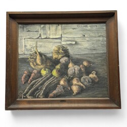 | Omschrijving | Schilderij, olieverf op doek. Stilleven met groente. Rechtsboven gesigneerd Robby Camphausen (Hildesheim 1895 – Keulen 1939). In houten profiellijst. Herkomst: nazaten Helene Kröller-Müller (Essen 1869 – Otterlo 1939). |