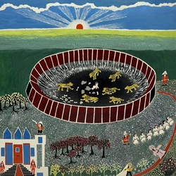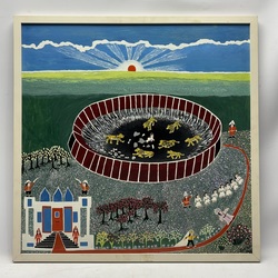 | Omschrijving | Schilderij, olieverf op board. Verso titel ‘Daniël in de leeuwenkuil’. Rechtsonder gemonogrammeerd ‘RW’ = Ruurd Wiersma (Rinsumageest 1904 – Burdaard 1980). In witte profiellijst. Provenance: collectie W.A. Braasem, met label Westfries Museum Hoorn, veiling De Eland sept 1997, lot 1362. Tentoonstelling: Ruurd Wiersmahûs, 2014 |