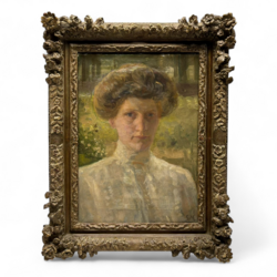 | Omschrijving | Schilderij: portret van een vrouw, olieverf op doek, rechtsonder gemonogrammeerd S.M., mogelijk Simon Maris (1873-1935), in rijk gestoken lijst |