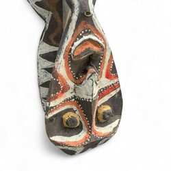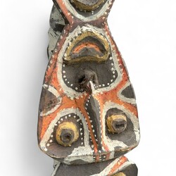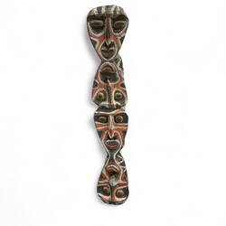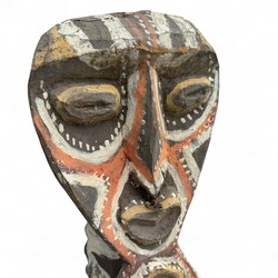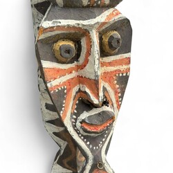 | Omschrijving | Een 20e eeuwse uit hout gestoken en gepolychromeerde totempaal of huisschild, Sepik/Abelam, Papoea-Nieuw Guinea. |