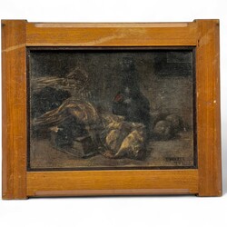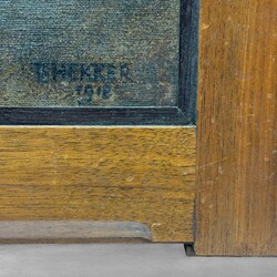 | Omschrijving | Schilderij olieverf op doek. Stilleven met fles, mand en boek. Rechtsonder gesigneerd Theo Hekker (1880 – 1959), gedateerd 1918. In Amsterdamse School lijst. . Herkomst: nazaten Helene Kröller-Müller (Essen 1869 – Otterlo 1939). |