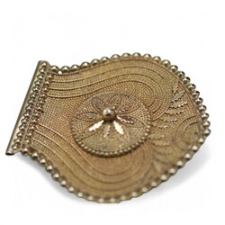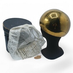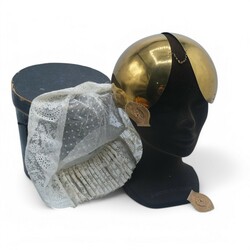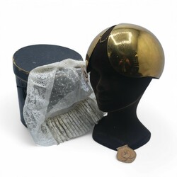 | Omschrijving | Een antiek 19e eeuws verguld koperen oorijzer met antieke 19e eeuwse 14 karaats (585/1000) geelgouden oorijzerknoppen, gemerkt met eikenblaadje. Met daarbij een kanten mutsje, in originele oorijzerdoos, Boschma Leeuwarden |