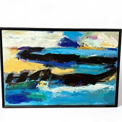 | Omschrijving | Schilderij, olieverf op doek. 'Waterlandschap', rechtsonder gesigneerd Annemarieke Woltman (Utrecht 1959 - Leeuwarden 1997), gedateerd 1996. |