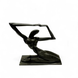 Bronzen beeld van een gestileerd geknield figuur, modern