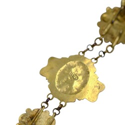 | Omschrijving | Een antiek 19e eeuws 14 karaats (585/1000) gouden bootjescollier, filigrain bewerkt en bezet met gefacetteerde granaat en bergkristal. Met onduidelijk meesterteken. |