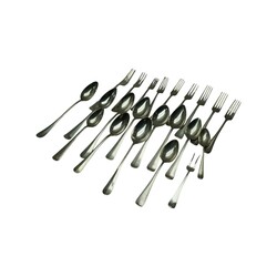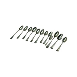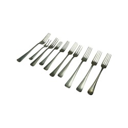 | Omschrijving | Een lot met tweede gehalte (835/1000) zilveren lepels en vorken met Haagse lof. Diverse meester en jaartallen. Totaal ca. 1000 gram. |