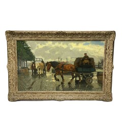 | Omschrijving | Schilderij, olieverf op doek. Paard en wagens in de haven van Rotterdam. Rechtsonder gesigneerd Gijsbertus Johannes van OVerbeek (Dordrecht 1882 - Rotterdam 1947). Herkomst: kunsthandel Protector, Rotterdam. |