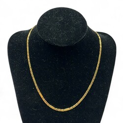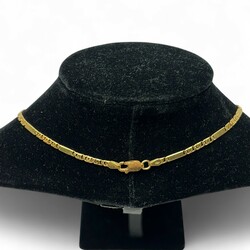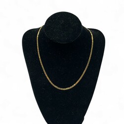 | Omschrijving | Een 20e eeuws 18 karaats (585/1000) geelgouden collier, gevlochten en met langwerpige schakels. Gemerkt op de sluiting |