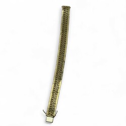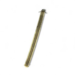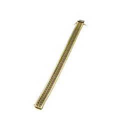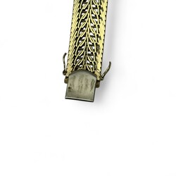 | Omschrijving | Een 20e eeuws 14 karaats (585/1000) geelgouden damesarmband, gedeeltelijk opengewerkt en gematteerd. Gemerkt ‘585’ op de sluiting. |