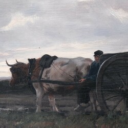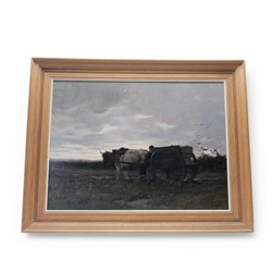 | Omschrijving | Schilderij, olieverf op doek. Boer met ossekar in een landschap. Gesigneerd Herman Johannes van der Weele (Middelburg 1852 – Den Haag 1930). Gerestaureerd in 2016 bij Atelier Martin Bos, Noordwolde |