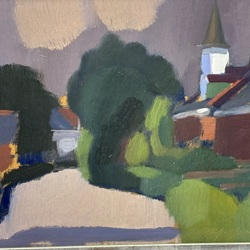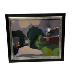 | Omschrijving | Schilderij, olieverf op paneel. 'Sijbrandeburen'. Rechtsonder gesigneerd Jentsje Popma (Zwolle 1921 - Leeuwarden 2022), gedateerd 1979. |