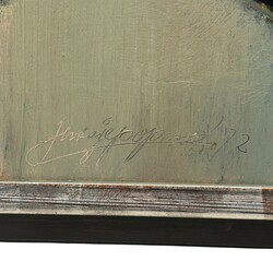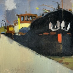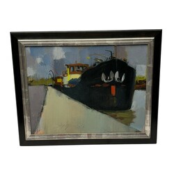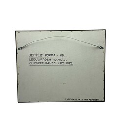 | Omschrijving | Schilderij, olieverf op paneel. Schip in kanaal te Leeuwarden, vermoedelijk bij de Condensfabriek. Middenonder gesigneerd Jentsje Popma (Zwolle 1921 - Leeuwarden 2022), gedateerd 1972. In zwarte profiellijst. |