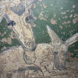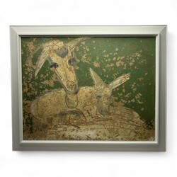 | Omschrijving | Schilderij, olieverf op board. Voorstelling van twee geiten. Rechtsonder gesigneerd Klaas Koopmans (Garijp 1920-2006) en gedateerd 1988. |