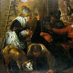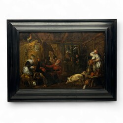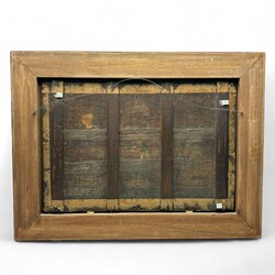 | Omschrijving | Schilderij, olieverf op paneel. Driekoningen. Ongesigneerd, school David Ryckaert 17e eeuw. Met aan de achterzijde 19e eeuwse labels 'H. Waite Carver and Gilder Manchester'. In zwarte profiellijst. Zie aflevering Tussen Kunst en Kitsch, Aviodrome Lelystad, oktober 2019. En zie voor een soortgelijk schilderij museum KMSK, Brussel, inv. 3739. |