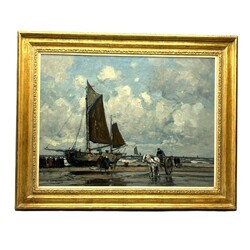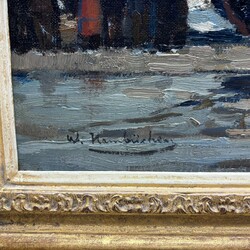 | Omschrijving | Schilderij, olieverf op doek. 'Aankomst van de vissersvloot'. Linksonder gesigneerd Wilhelm Hambüchen (Düsseldorf 1869 - 1939). Herkomst: kunsthandel Mark Smit, 2006, daarvoor vermoedelijk Christie's Amsterdam, 22 juni 2004, lot 204. In vergulde Gehring lijst. |