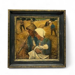 | Omschrijving | Schilderij, olieverf op paneel. Voorstelling van een boer en boerin, met op de achtergrond diverse figuren, verso titel 'Op weg naar huis'. Linksonder gesigneerd Willem van den Berg (Den Haag 1886 - Amsterdam 1970). Herkomst: veiling Bubb Kuyper, 26 november 2008, lot 4715 & kunsthandel Mark Smit, 2009. In Gehring profiellijst. |
