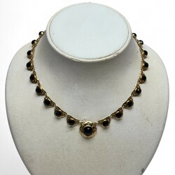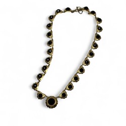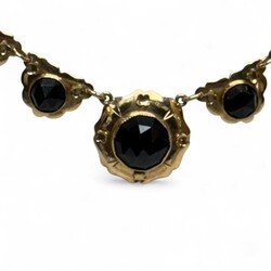| Omschrijving | Een 20e eeuws 14 karaats (585/1000) geelgouden collier, met gesculpte schakels, bezet met gefacetteerde granaat. Mr. P. Walsweer, werkzaam te Sneek van 1963 tot 1992. |