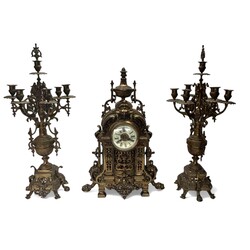 | Kavel | 318. Grote bronzen pendule met twee kandelaars |