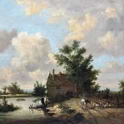 | Omschrijving | Nicolaas Johannes Roosenboom (1805–1880), Hollands landschap, olie/doek, gesigneerd en ingelijst. |
