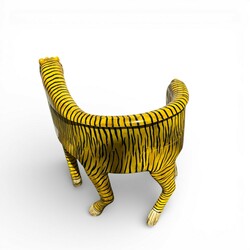 | Omschrijving | Een houten tijgerstoel, beschilderd jaren 70/80 |