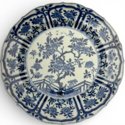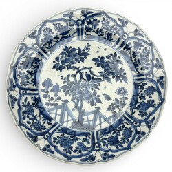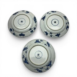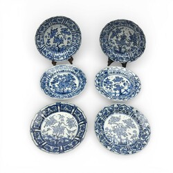 | Omschrijving | Lot van zes antieke laat 17e of vroeg 18e eeuwse Chinees porseleinen borden, Kangxi periode (1664-1722), met onderglazuur blauw decor, met voorstelling van een bloeiende boom bij een hekwerk, in de rand met acht bladvormige medaillons met voorstelling van bloemen. Aan de achterzijde gemerkt met bloemen in dubbele ring. |