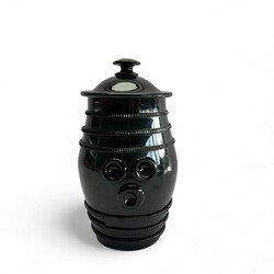 | Omschrijving | Een antieke 19e eeuwse Duitse groenglazen voorraadpot, zgn. ‘daumenglas’. Op de knop van de deksel en aan de onderzijde met pontilmerk. |