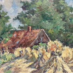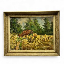 | Omschrijving | Schilderij, olieverf op doek. Arbeiders op het land tussen korenschoven, met boerderij op de achtergrond. Rechtsonder gesigneerd A. (Andries) Olthoff (Arnhem 1897 - Amsterdam 1971). |