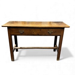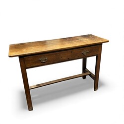 | Omschrijving | Een antieke 18e eeuwse eikenhouten sidtable met lade en messing beslag |