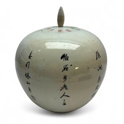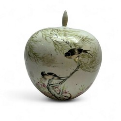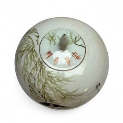 | Omschrijving | Een antieke 19e of vroeg 20 eeuwse Chinees porseleinen gemberpot, decor van twee vogels op een tak tussen bloemen, aan de achterzijde en op de deksel met karaktertekens. Aan de onderzijde gemerkt. |