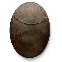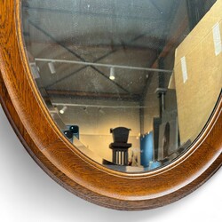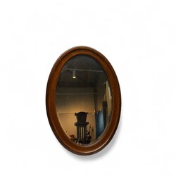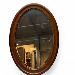 | Omschrijving | Een antieke spiegel, ca. 1900. Ovaal model, facetgeslepen glas met eikenhouten lijst. |
