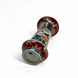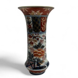 | Omschrijving | Oosterse porseleinen vaas, handbeschilderd met florale en geometrische decoraties in Imari-paletten. 19e eeuw. |
