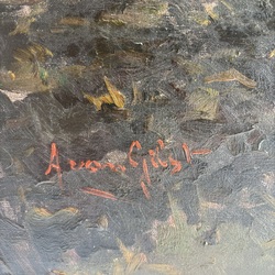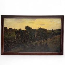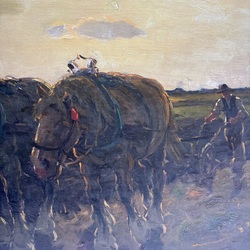 | Omschrijving | Schilderij, olieverf op doek. Ploegende boer met drie paarden, linksonder gesigneerd Arnout van Gilst (Den Haag 1898 - Bennebroek 1982). In houten profiellijst. |