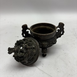 | Kavel | 806. Bronzen tempelleeuw en dekselpotje |