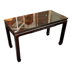 | Omschrijving | Een 20e eeuwse Chinese rozenhouten tafel, gestoken, met glazen blad |