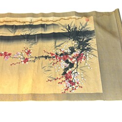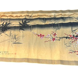 | Omschrijving | Een Chinese scroll beschildering. Bamboetakken met rode en witte bloesem. Gesigneerd met drie rode zegelmerken en karaktertekens. |