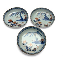 | Omschrijving | Drie 18e eeuwse capucijner imari kop en schotels en drie 18e eeuwse Japanse schoteltjes |
