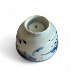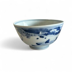 | Omschrijving | Lot van drie antieke 18e eeuwse Chinees porseleinen kastkommen, met onderglazuur blauw-wit decor, voorstelling van twee zittende figuren in een landschap. Aan de onderzijde gemerkt met karaktertekens. Zie voor een soortgelijke kom Groninger Museum, objectnummer 1978.0335. |
