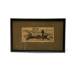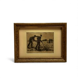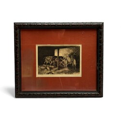 | Omschrijving | Drie vroeg 20e eeuwse etsen: W.J. Dingemans (1873-1925). Boeren op het land. Adriaan Moen (1879-1950). Kortenhoef, man in praam. Armand Collard (1848-1909). Stal met koeien. Alle drie gelijst. |