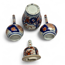 | Kavel | 523. Drie Japans Imari vaasjes en een cloisonée bekervaas op houten sokkel. |