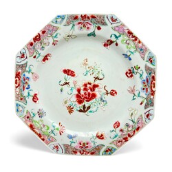 | Kavel | 791. Een achtkantige Qianlong Chinees porseleinen Famille Rose schotel. |
