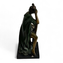| Kavel | 708. Een bronzen sculptuur van een dame op stoel |