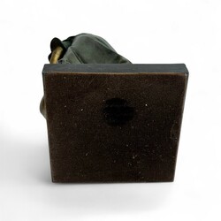 | Omschrijving | Een gepatineerd bronzen sculptuur op een natuurstenen sokkel. Voorstellend een rokende dame in ochtend jas op stoel. 20e eeuws. |